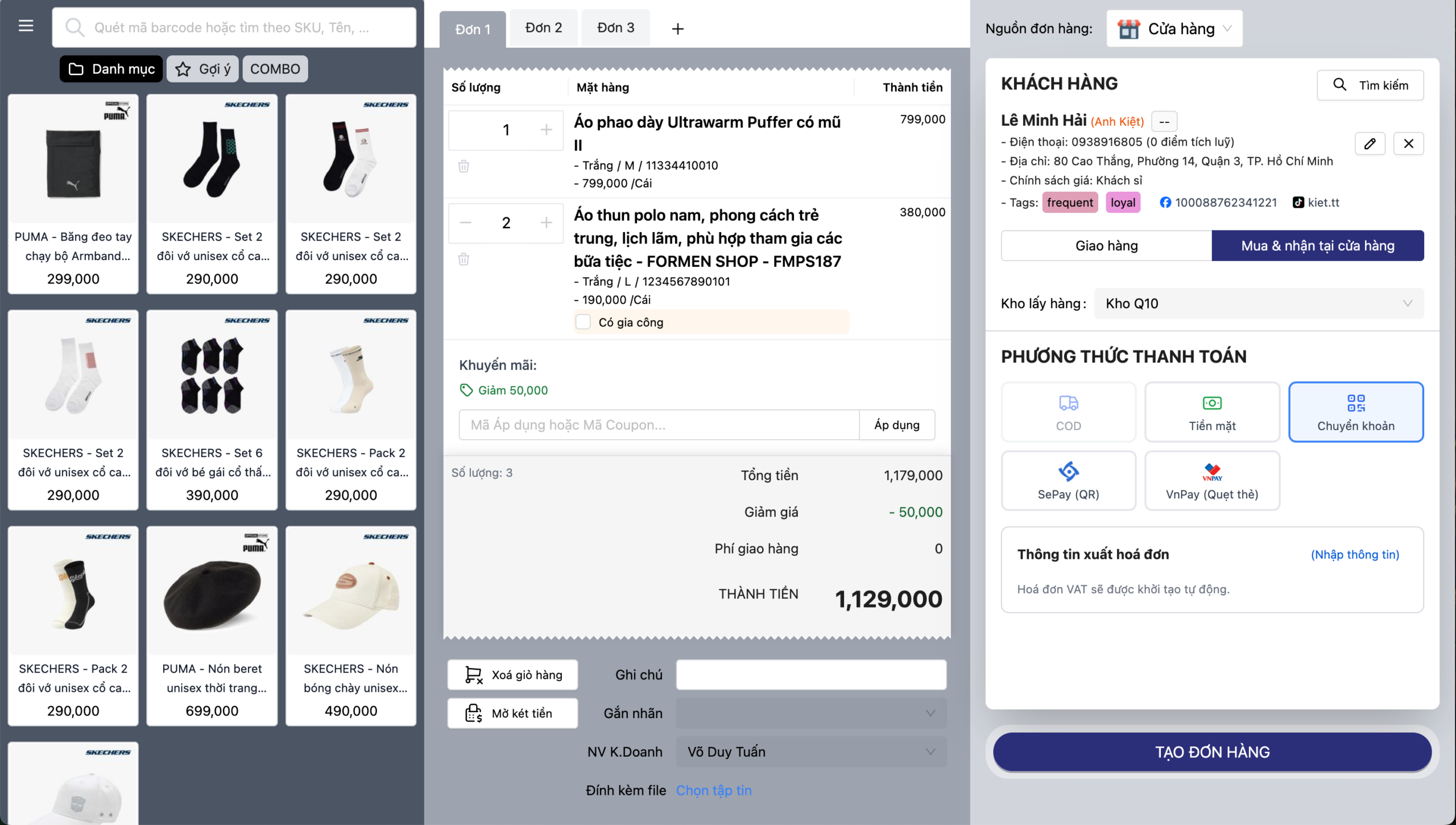 Thanh toán chính xác: Tổng tiền thanh toán được cập nhật ngay lập tức sau khi trừ khuyến mãi, giúp nhân viên thực hiện thao tác tạo đơn nhanh chóng.
