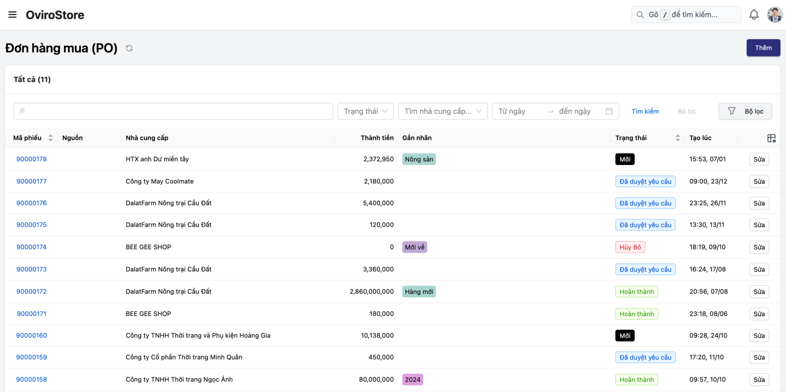 Trong bối cảnh thị trường biến động, việc phụ thuộc vào một nhà cung cấp duy nhất là rủi ro lớn đối với mọi doanh nghiệp bán lẻ. Để đảm bảo nguồn cung ổn định và tối ưu chi phí, khả năng quản lý linh hoạt mạng lưới đối tác cung ứng đã trở thành yêu cầu bắt buộc. Với Oviro, quy trình quản lý nhà cung cấp và đặt hàng (PO) được nâng tầm chuyên nghiệp, giúp bạn nắm thế chủ động trong kinh doanh.