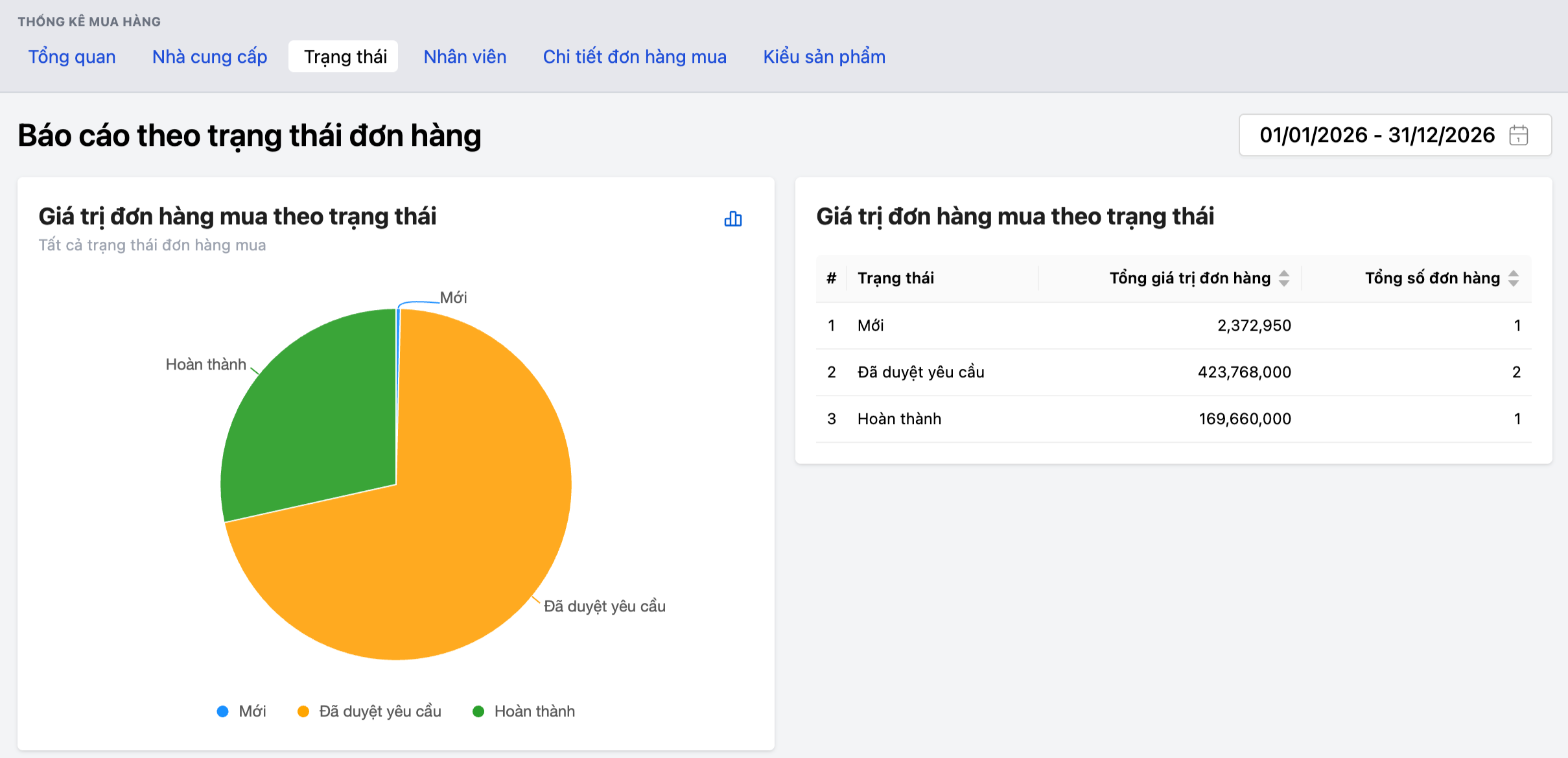 Quản trị lộ trình xuyên suốt: Theo dõi dòng chảy của hàng hóa qua từng trạng thái từ “Đã duyệt yêu cầu” đến khi “Hoàn thành”, mang lại cái nhìn toàn cảnh về năng lực cung ứng.