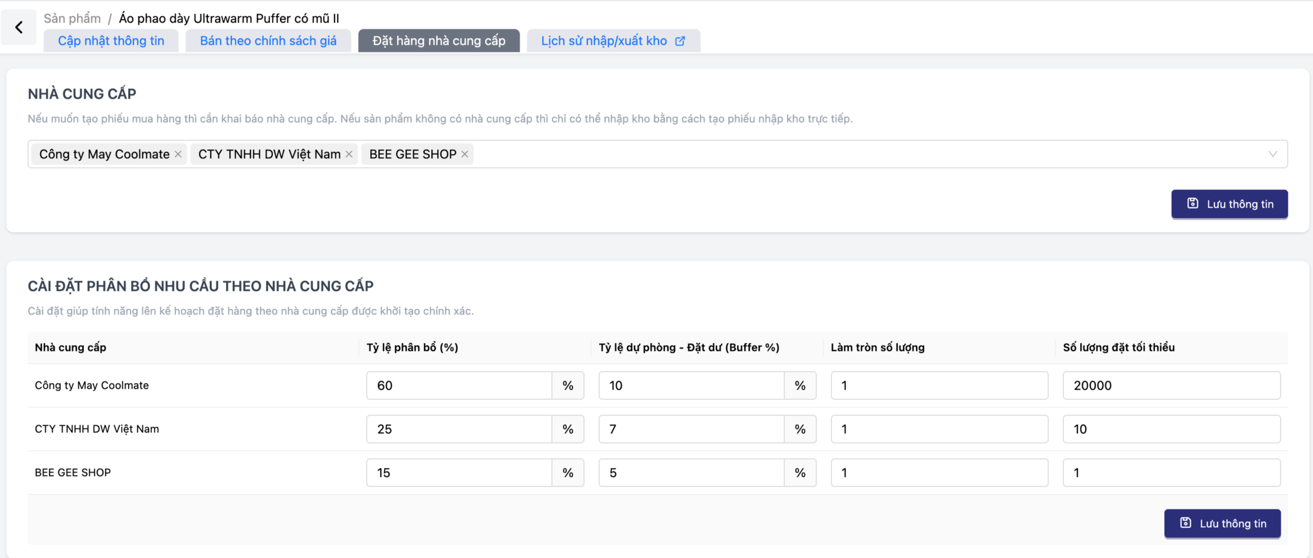 Thiết lập “Lá chắn” dự phòng: Với chỉ số Buffer (tỷ lệ dự phòng), hệ thống tự động tính toán dư địa hàng hóa, đảm bảo kệ hàng của bạn luôn đầy ắp ngay cả trong những giai đoạn cao điểm nhất.