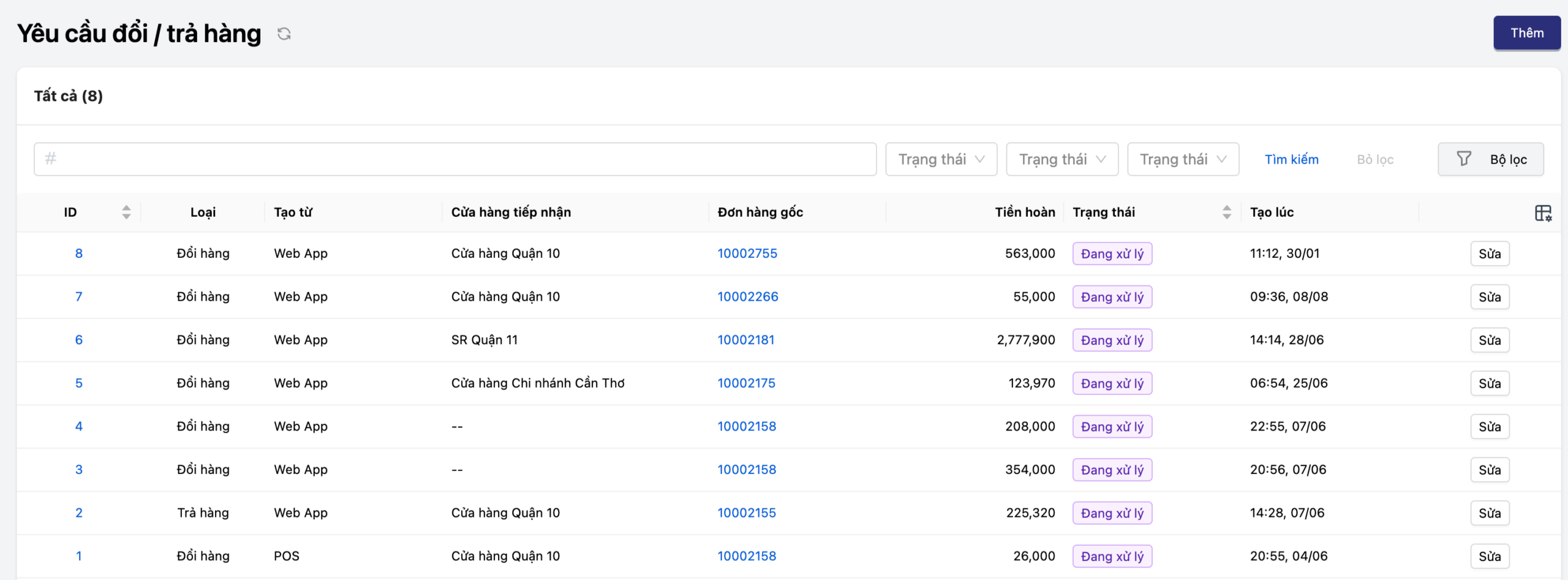 • Hoàn thành: Yêu cầu đã được xử lý xong, khách hàng đã nhận được sản phẩm đổi hoặc tiền hoàn.