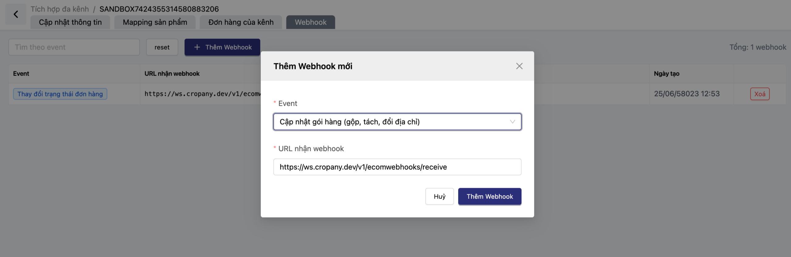 Oviro cung cấp khả năng tùy chỉnh nâng cao qua Webhook. Khi có các sự kiện như “Cập nhật gói hàng (gộp, tách, đổi địa chỉ)” diễn ra trên TikTok, hệ thống sẽ gửi tín hiệu về URL nhận webhook để Oviro xử lý tự động. Điều này cực kỳ hữu ích cho các doanh nghiệp có quy mô đơn hàng lớn, cần sự chính xác tuyệt đối trong khâu đóng gói và bàn giao cho đơn vị vận chuyển như GHTK HCM.