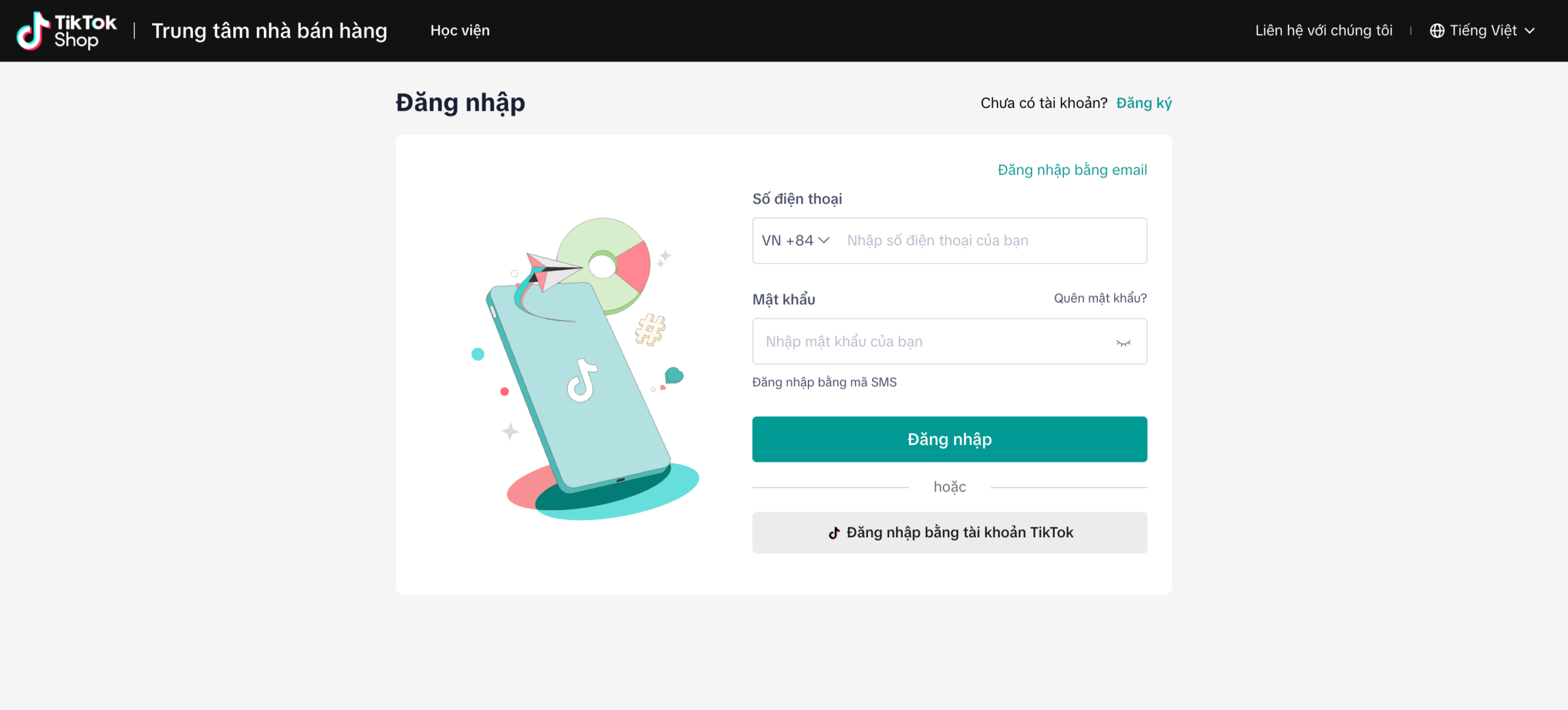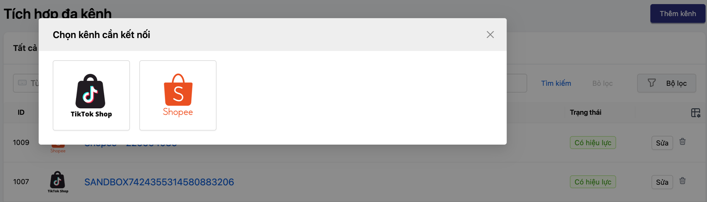 Từ giao diện quản trị Oviro, bạn chọn mục “Tích hợp đa kênh” và thêm mới kênh TikTok Shop. Hệ thống sẽ chuyển hướng bạn đến trang đăng nhập chính thức của TikTok Shop Seller Center để xác thực quyền truy cập.