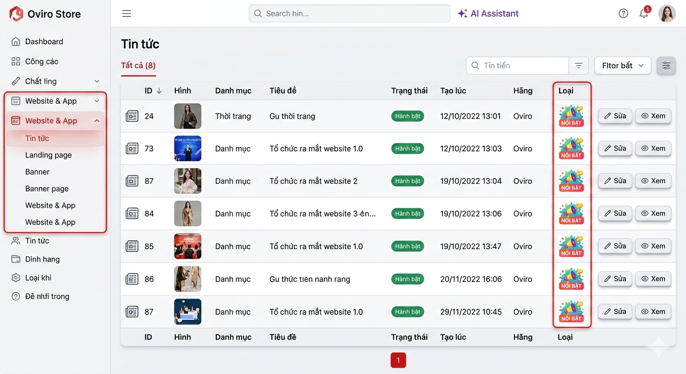 Nội dung là linh hồn của website. Oviro cung cấp một trình quản lý tin tức vô cùng chuyên nghiệp và dễ sử dụng. Tại đây, Admin có thể: