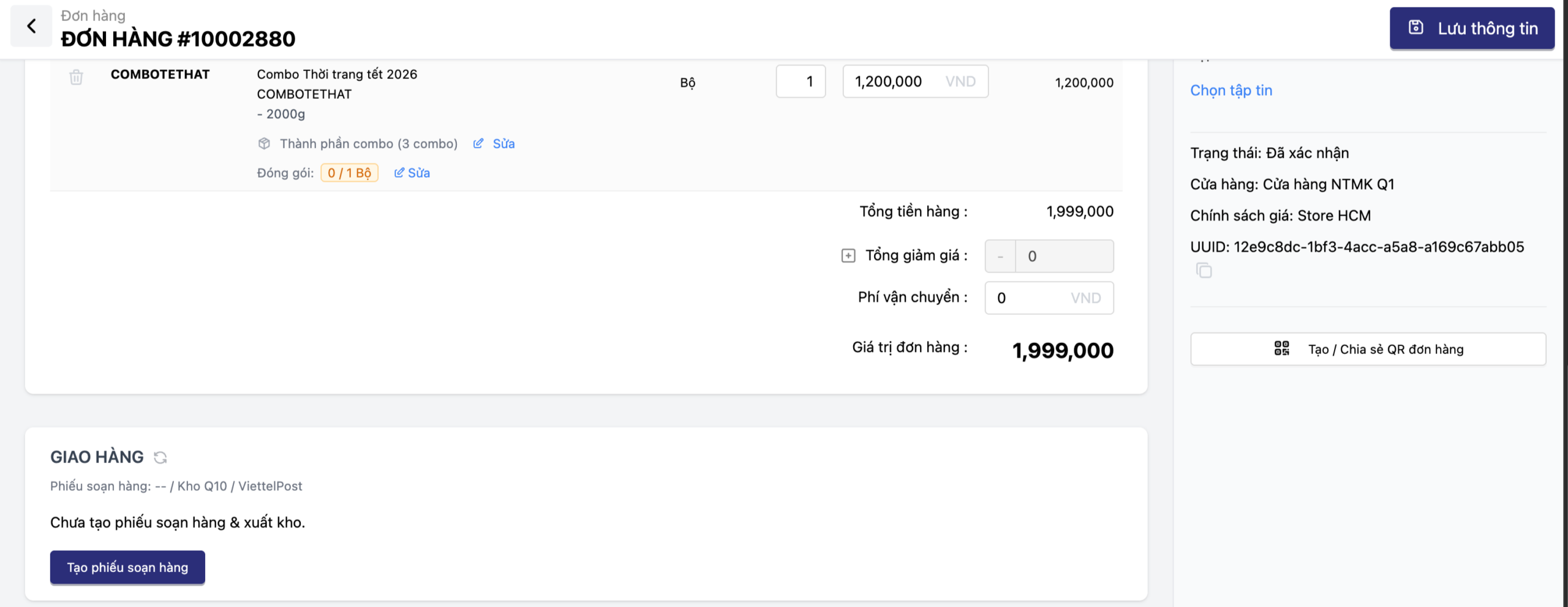 Bước 2: Xác nhận & Tạo phiếu soạn hàng
