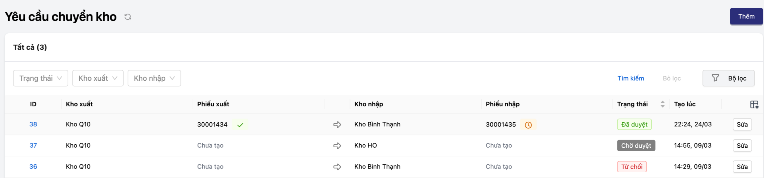 Đây là điểm khác biệt trong logic của Oviro. Khi yêu cầu chuyển kho được tạo, hệ thống sẽ tự động sinh ra một Phiếu xuất kho tương ứng.
