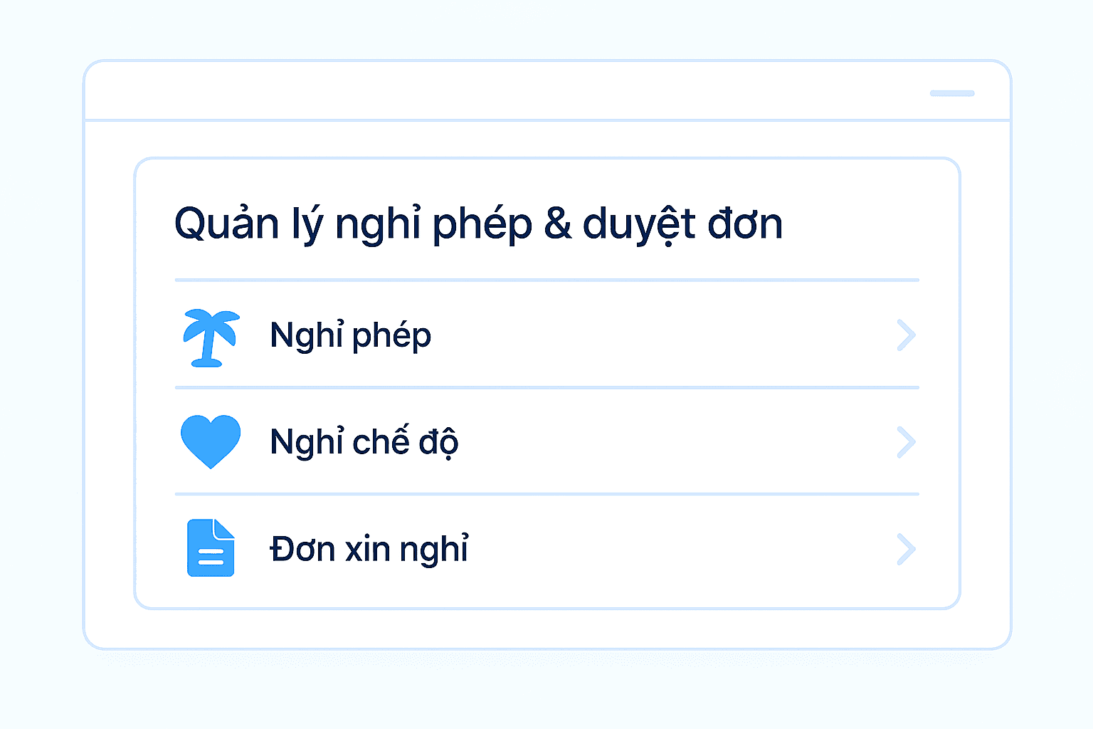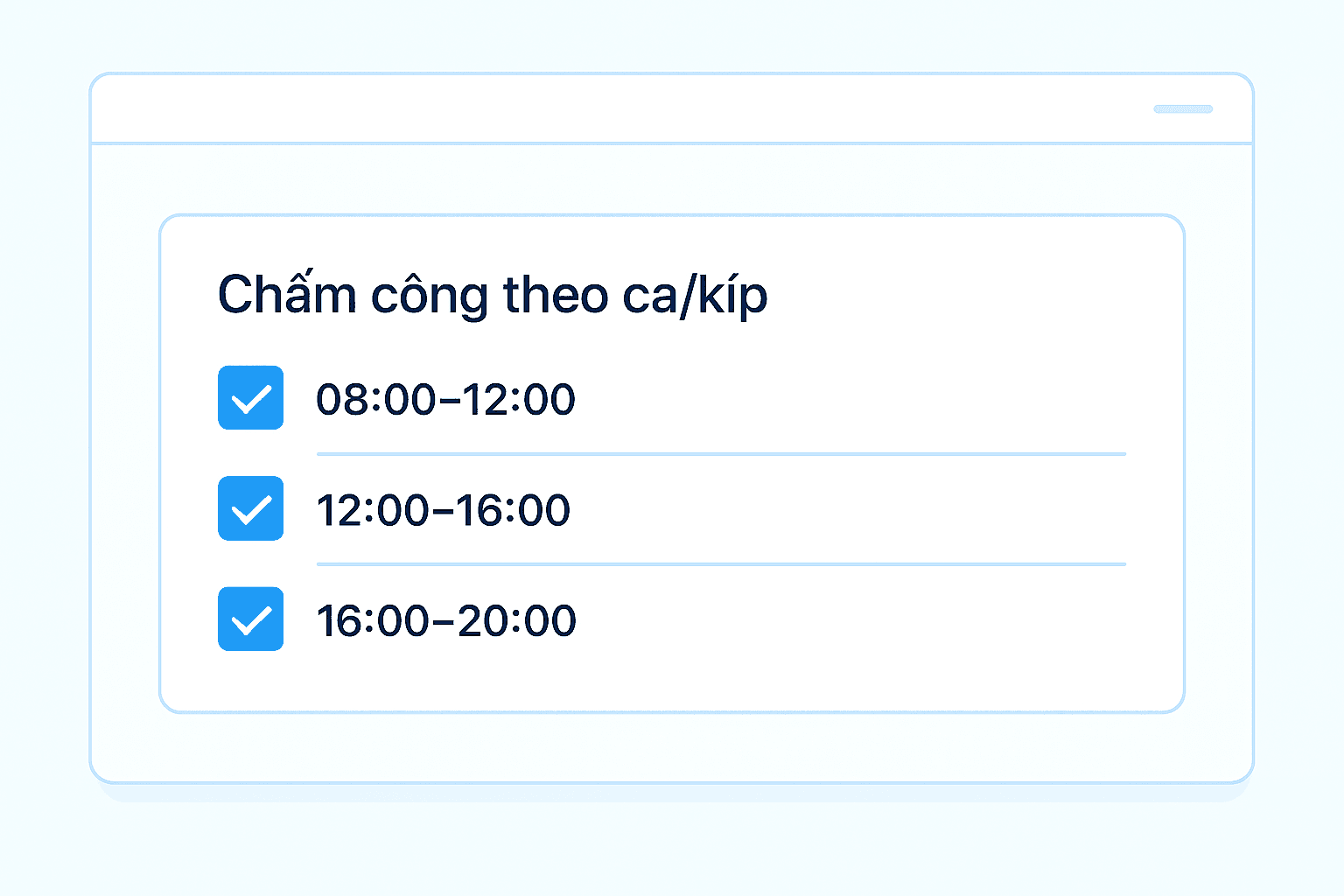 Theo dõi giờ vào – ra, ca làm, làm thêm và nghỉ phép để tính lương và đánh giá hiệu suất chính xác.