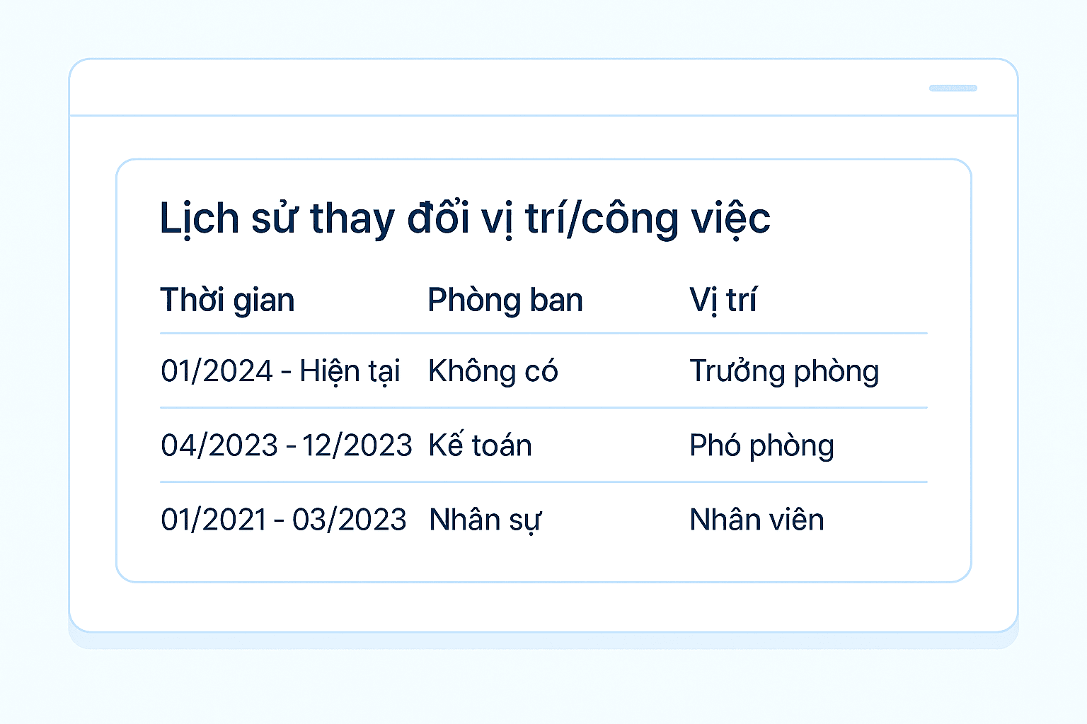 Lưu trữ đầy đủ thông tin cá nhân, vị trí công việc, hợp đồng và quá trình làm việc của từng nhân viên.