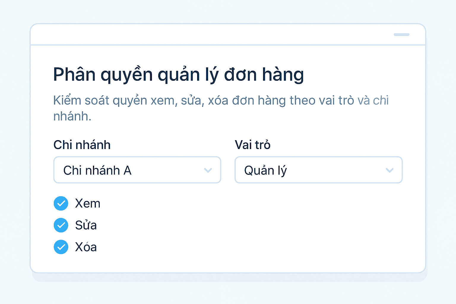 Chặn huỷ đơn, chỉnh giá nếu chưa được phép, đảm bảo đúng vai trò từng nhân viên.